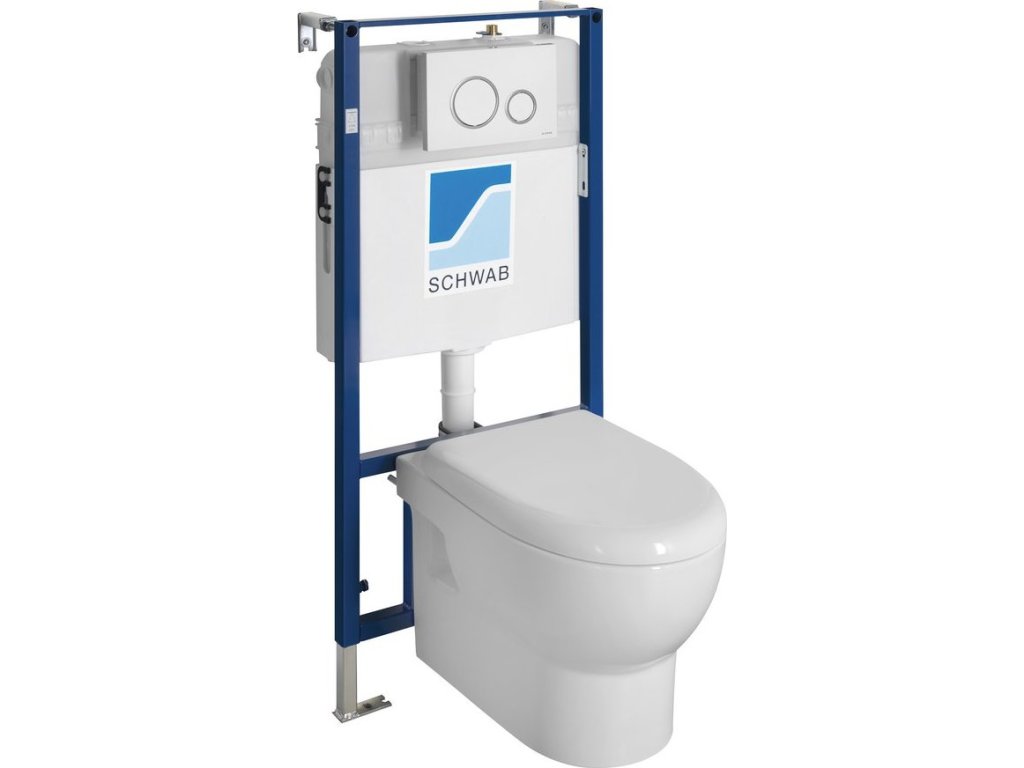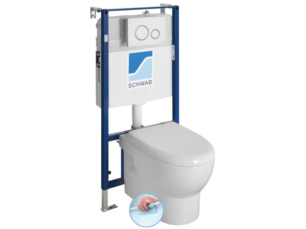 ABSOLUTE závěsné WC Rimless s podomítkovou nádržkou a tlačítkem Schwab, bílá 10AB02002-SET5