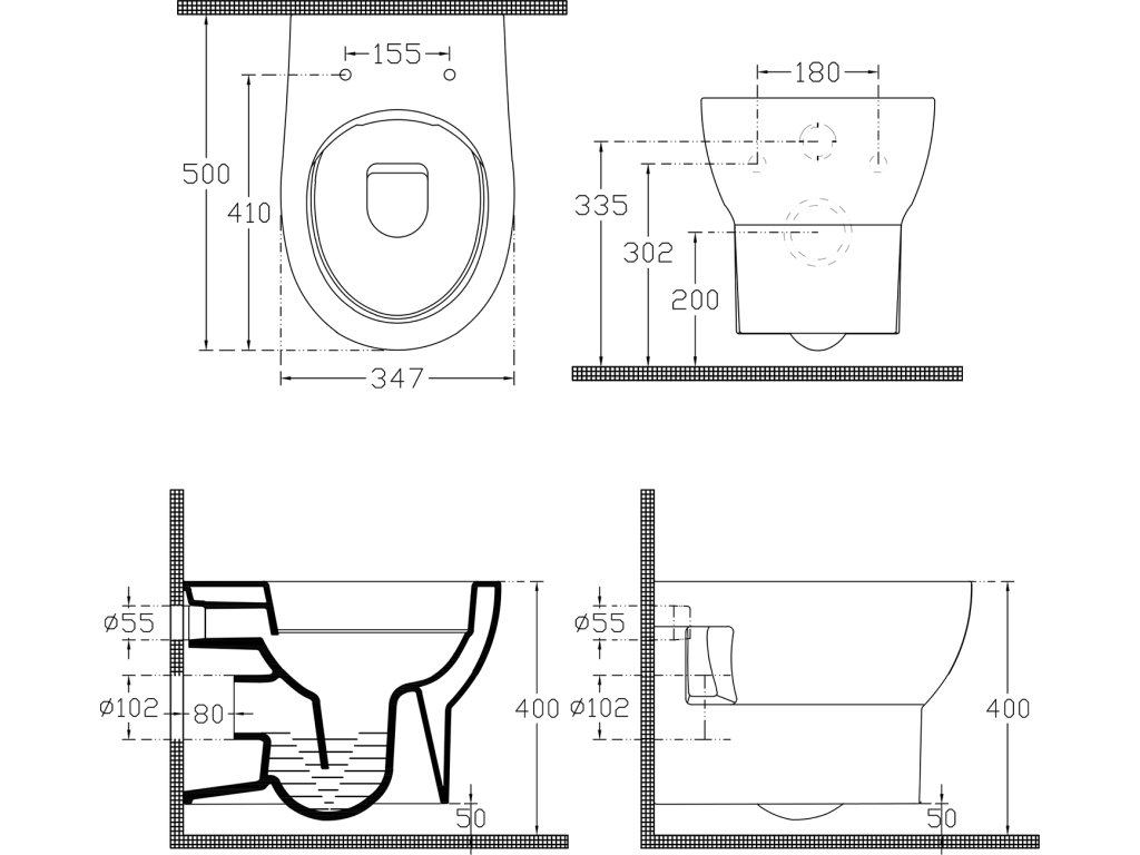 Rimless (NoRim) – toalety bez tradičního oplachového kruhu. Hladký povrch bez dutin a záhybů. Oplachová voda vytéká rozdělovačem vody pouze ze zadní části WC mísy a díky speciálnímu tvaru keramiky dokonale opláchne vnitřní prostor. Výhodou je snadná údržba a čištění WC mísy.