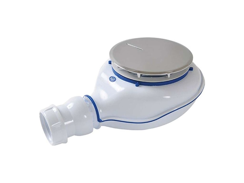 Samočistící sifon pro sprchové vaničky s odpadním otvorem o průměru 90 mm a s chromovým víkem o průměru 118 mm. Kloubové připojení odtoku pro lepený či zásuvný spoj, s možností vícesměrného umístění výstupu vody v rozsahu 30° horizontálně a 20° vertikálně.
