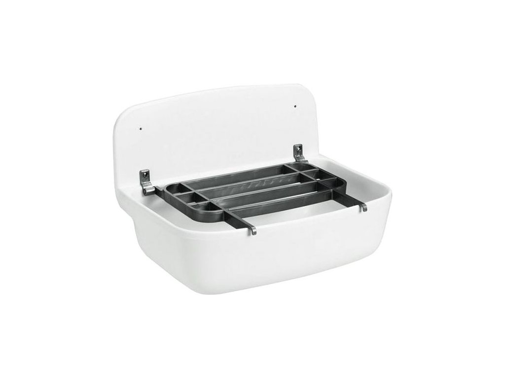 Sklápěcí rošt pro nástěnné umyvadlo kompletní se závěsem v kovově šedé barvě.