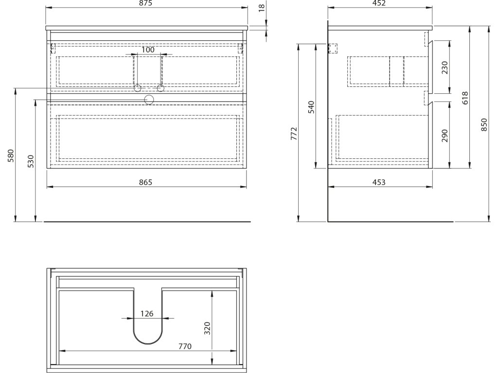 Desky pod umyvadlo jsou dodávány bez vyvrtaných otvorů pro baterii a odpad.
