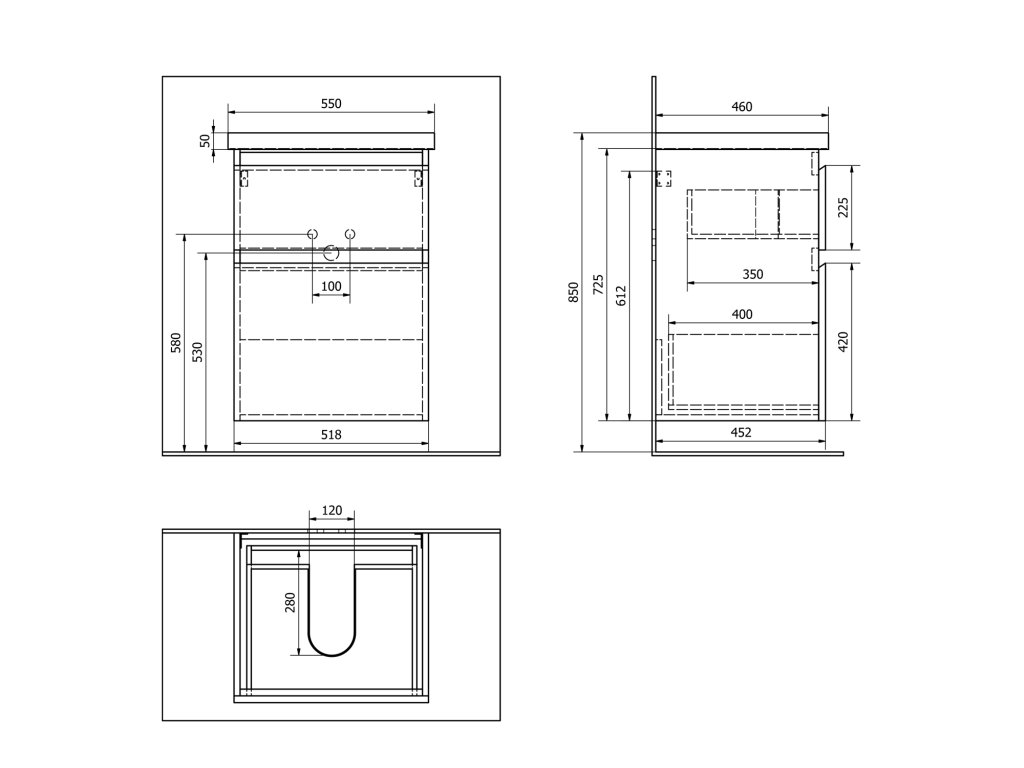 Aqualine ALTAIR umyvadlová skříňka 52x72, 5x45cm, bílá AI255
