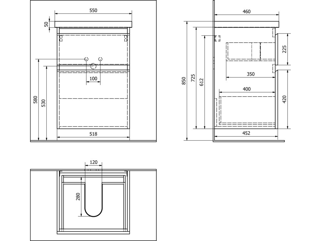 Aqualine ALTAIR umyvadlová skříňka 52x72, 5x45cm, dub emporio AI355