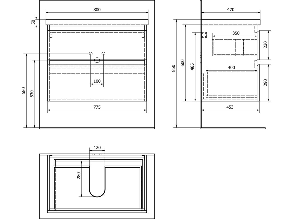 Aqualine ALTAIR umyvadlová skříňka 77, 5x60x45cm, černá mat AI680