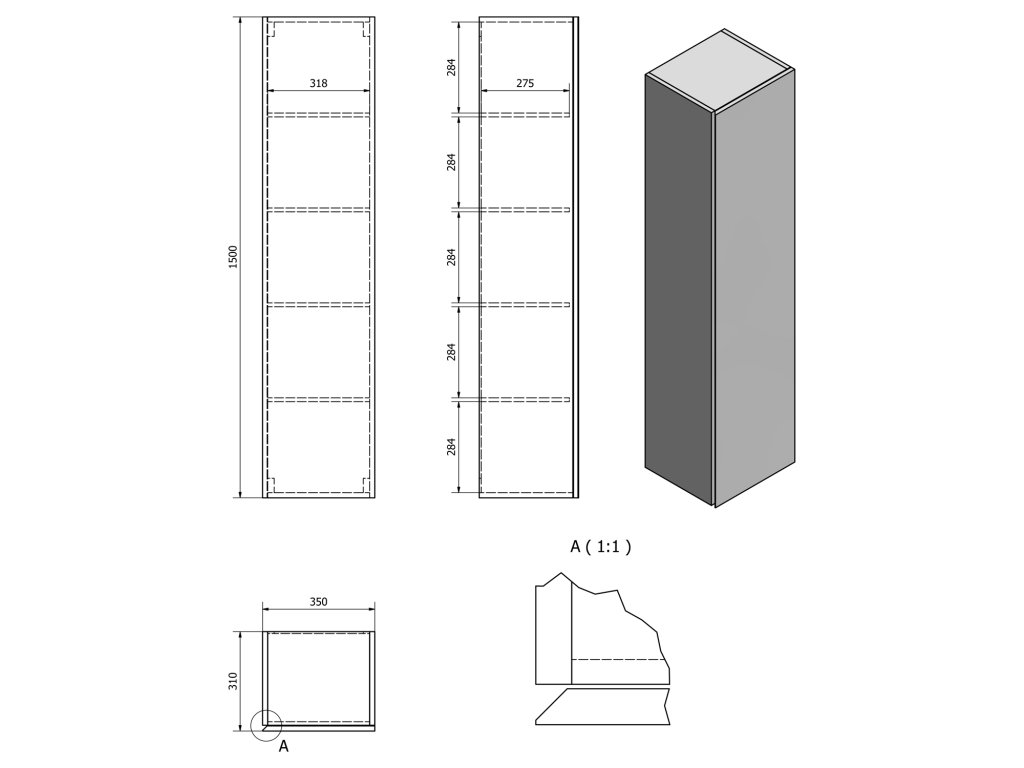 Aqualine ALTAIR vysoká skříňka 35x150x31cm, dub emporio AI450
