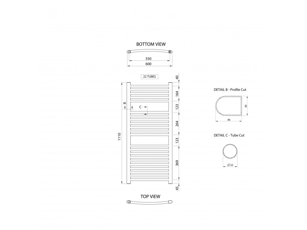 Aqualine ALYA otopné těleso oblé 600x1110mm, chrom LLC202