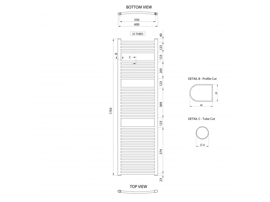Aqualine ALYA otopné těleso oblé 600x1703mm, chrom LLC205
