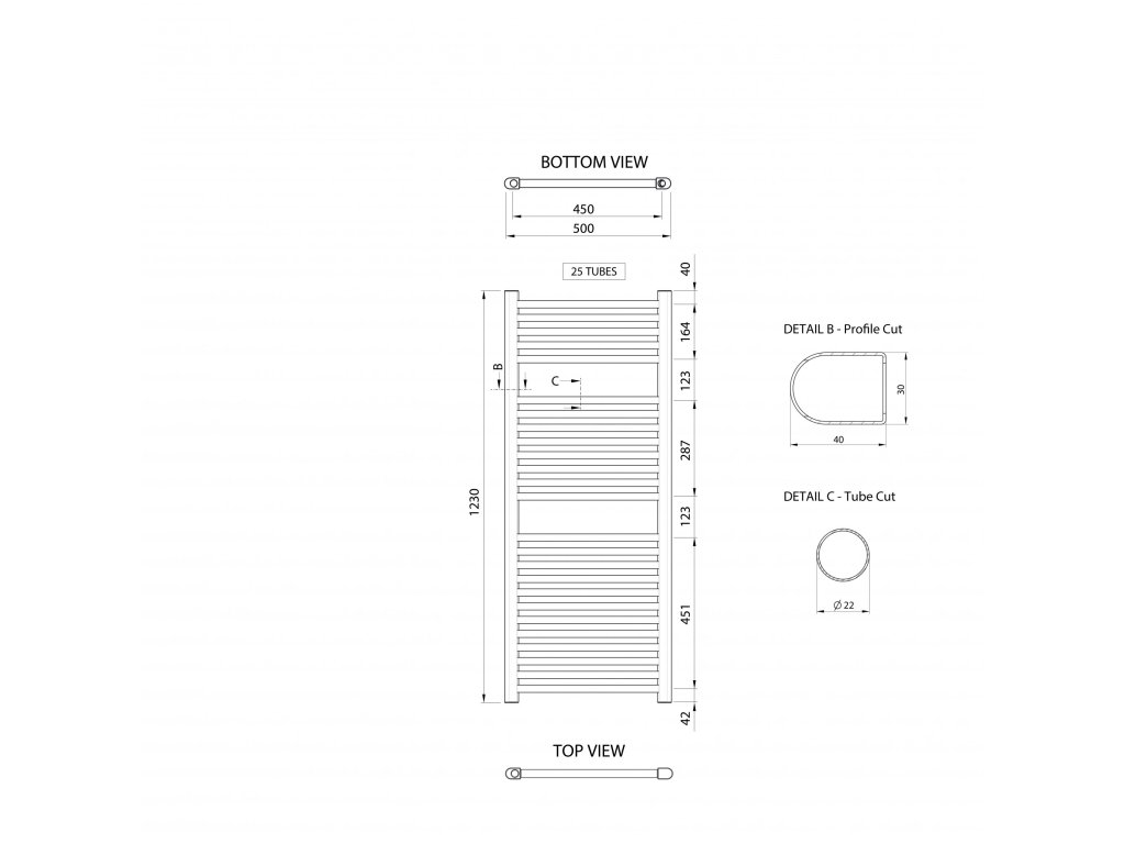 Aqualine ALYA otopné těleso rovné 500x1230mm, chrom LLR104