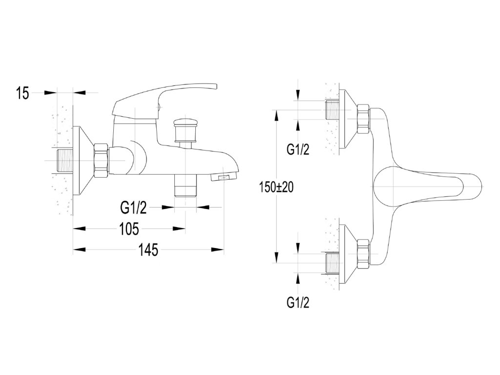 Aqualine AQUALINE 35 nástěnná vanová baterie, chrom 52118