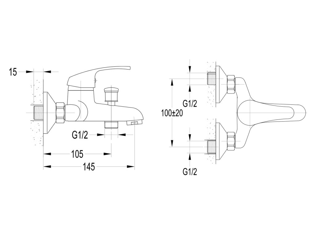 Aqualine AQUALINE 35 nástěnná vanová baterie, rozteč 100mm, chrom 52158