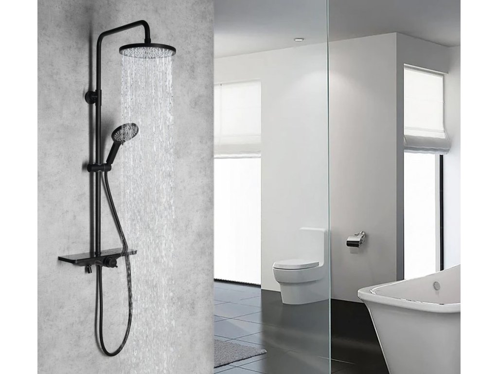 Aqualine ARONA sprchový sloup s baterií a napouštěním, černá mat SL210B