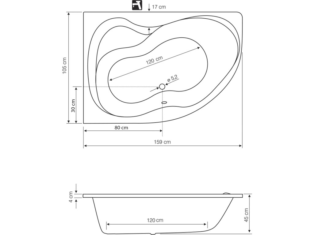 Aqualine CIDLINA 160 vana 160x105x45cm, levá, bílá G3615