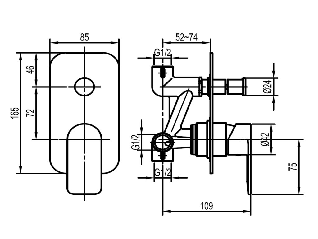 Aqualine DAPHNE podomítková sprchová baterie, 2 výstupy, chrom DH942