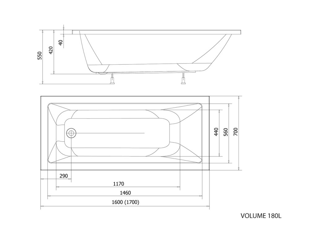 Aqualine DOUBRAVA obdélníková vana 160x70x42cm, bílá A1670