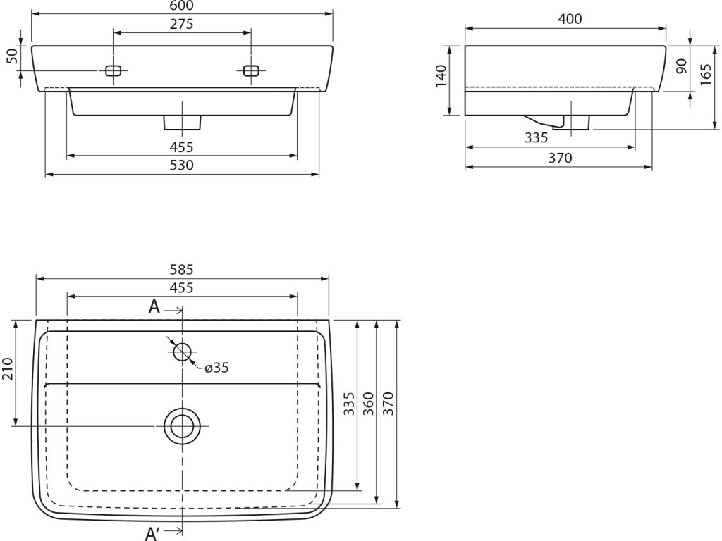 Aqualine DURU keramické umyvadlo 60x40cm, bílá TU0351