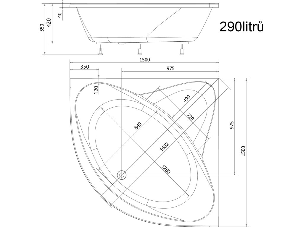 Aqualine DYJE rohová vana 150x150x42cm, bílá A1550