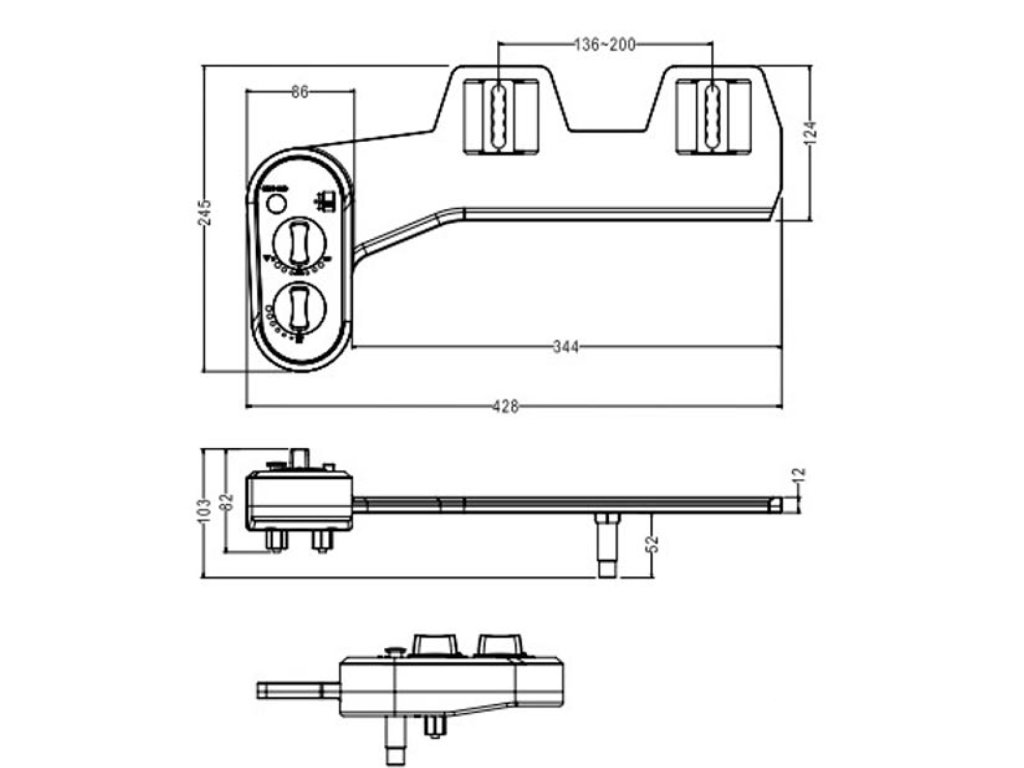 - Přídavný bidet lze dodatečně instalovat pod stávající sedátko, pro téměř všechny typy WC mís. Rozteč uchycení je 136 - 200 mm.