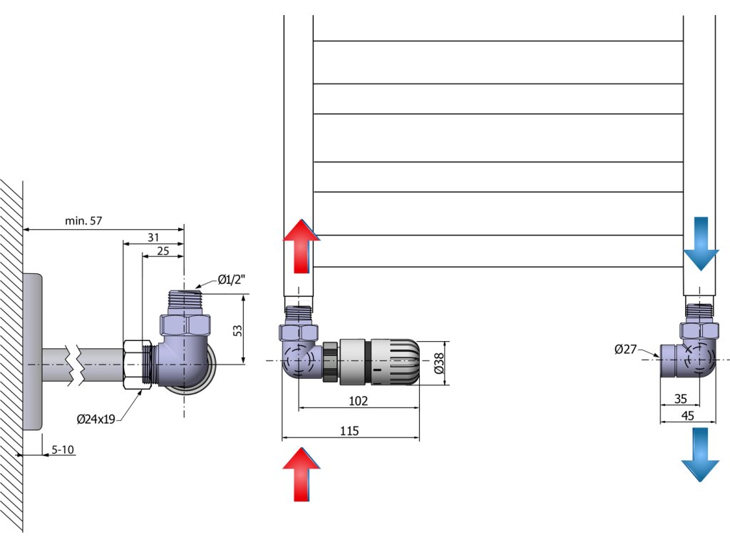V případě ústředního vytápění je důležitý výběr připojovací sady ventilů. Na výběr je použití ručního ventilu nebo ventilu s termostatickou hlavicí.