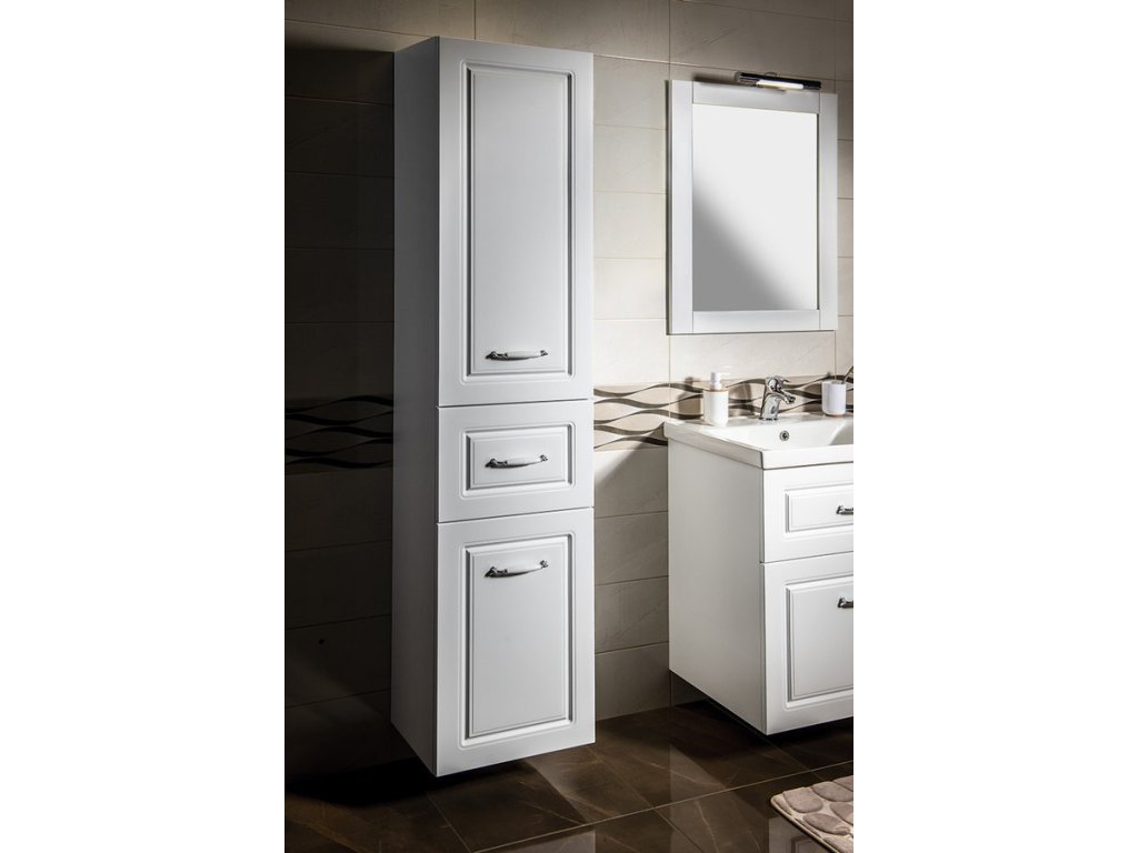 FAVOLO je klasická série koupelnového nábytku s decentně frézovaným dekorem na čelech zásuvek a dvířkách v bílém matném provedení. Umyvadlové skříňky lze kombinovat se zrcadly a doplňkovými skříňkami ve stejném stylu a odstínu. Elegantní umyvadla podtrhují vzhled celé série, která se hodí nejen na chalupu či do činžovního domu ze začátku 20. století.