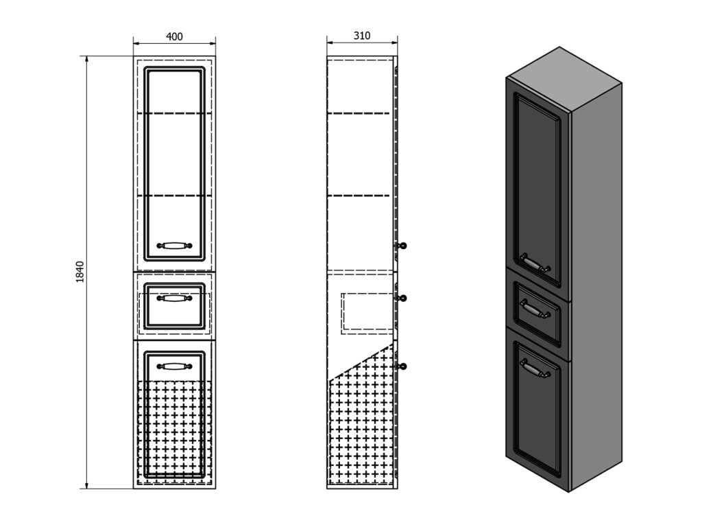 Aqualine FAVOLO vysoká skříňka košem 40x184x31cm, bílá mat FV180