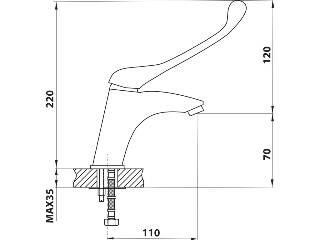 Aqualine KASIOPEA stojánková umyvadlová baterie, lékařská páka, chrom 1107-44