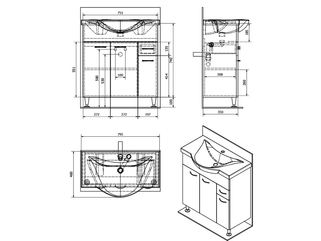 Kolekci lze kombinovat s širokou nabídkou doplňkových skříněk, zrcadel a galerek. Ceny i rozměry jsou uvedeny bez nožiček.