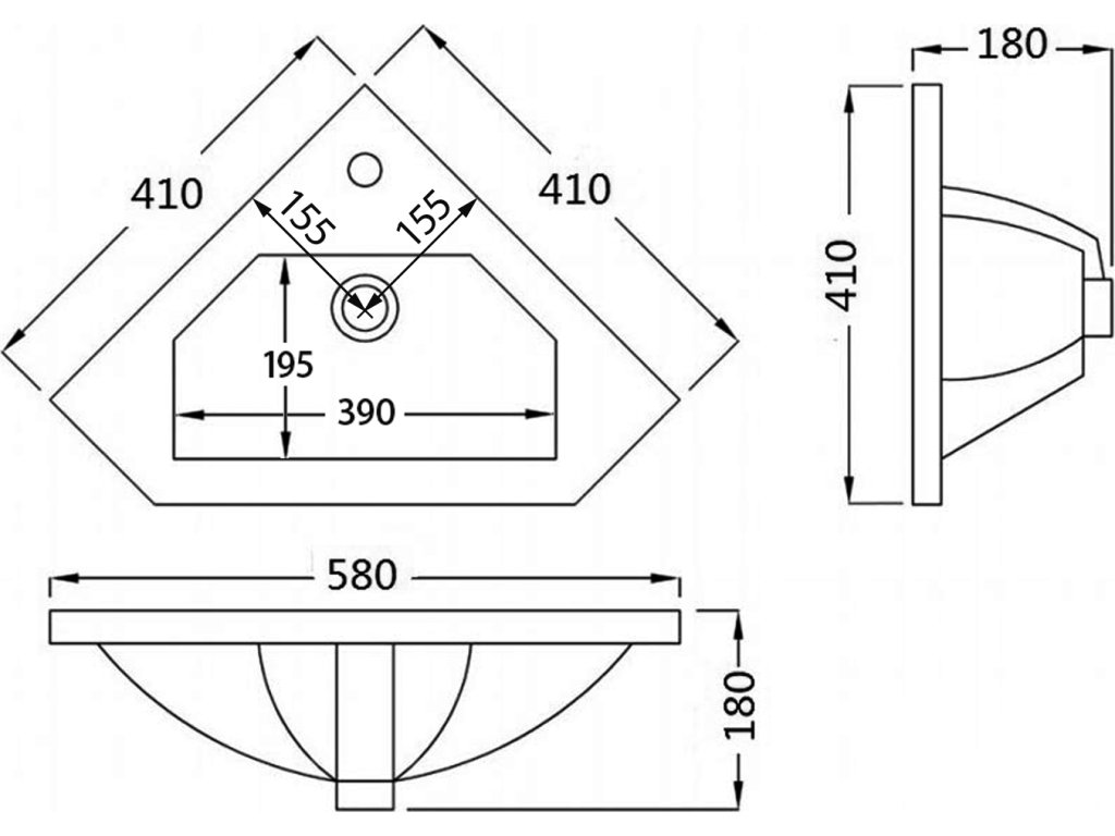 Aqualine Keramické umyvadlo rohové 41x41 cm, nábytkové 1601-40