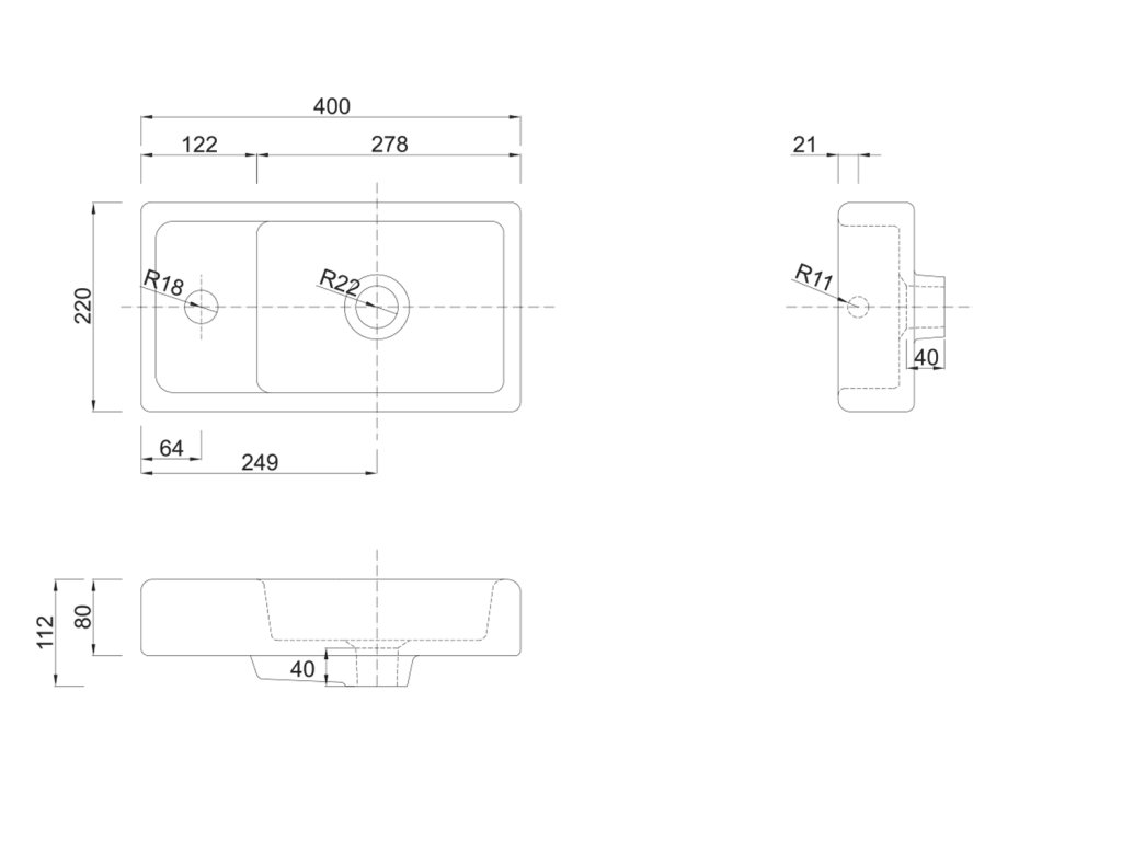 Aqualine Keramické umývátko, nábytkové, 40x22 cm, bílá DD4022