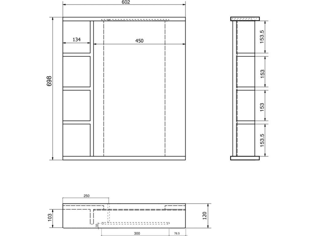 Aqualine KORIN STRIP zrcadlo s LED osvětlením a policemi 60x70x12cm KO370S