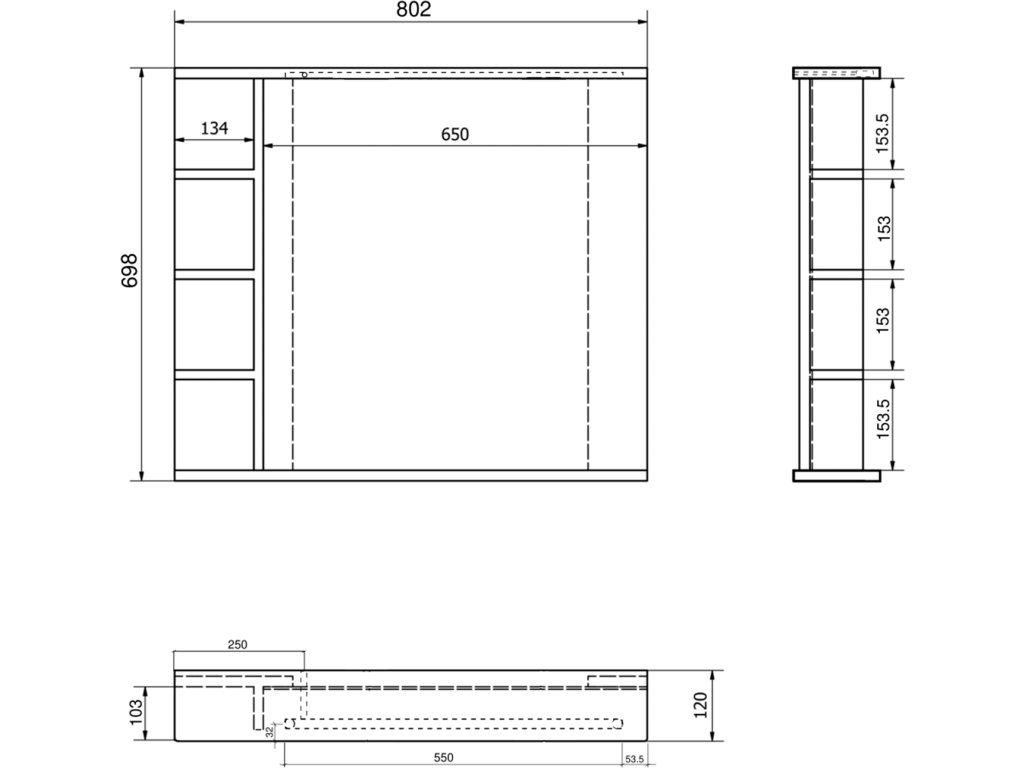 Aqualine KORIN STRIP zrcadlo s LED osvětlením a policemi 80x70x12cm KO350S