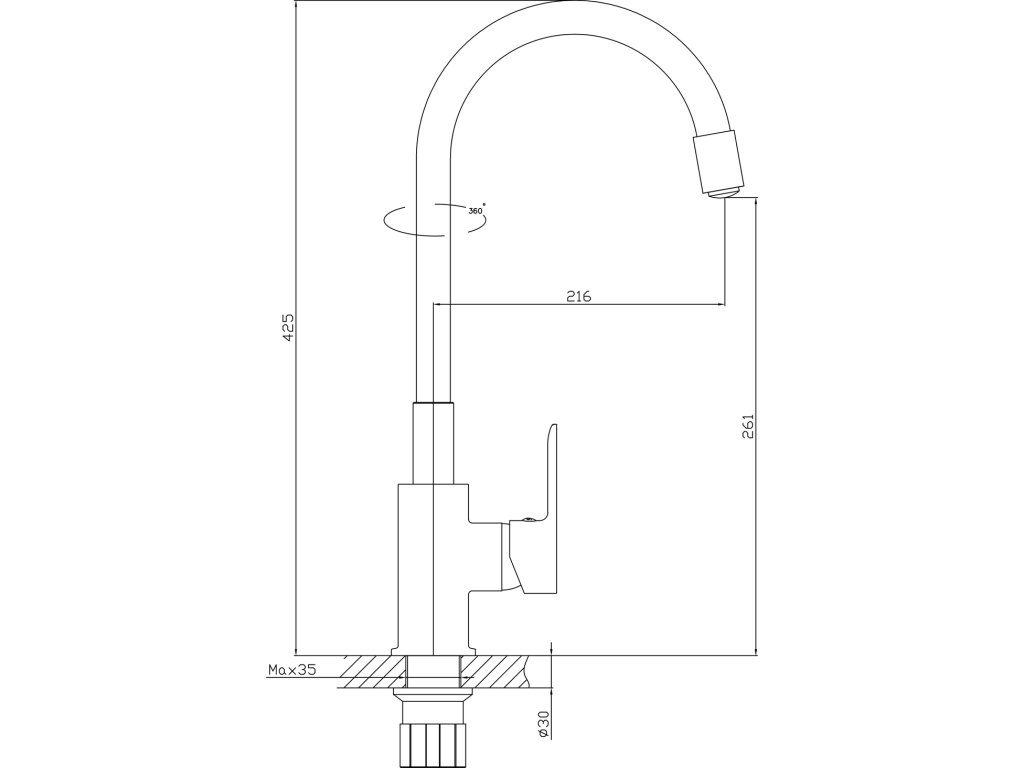 Aqualine LORE stojánková dřezová baterie, flexibilní ramínko, černá/chrom 1106-70