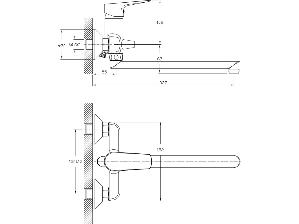 Aqualine LOTTA nástěnná umyvadlová/vanová baterie, chrom LT640