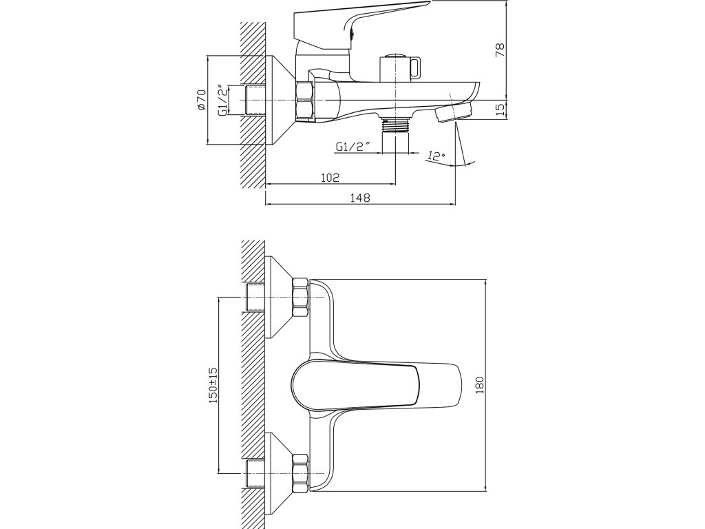 Aqualine LOTTA nástěnná vanová baterie, chrom LT610
