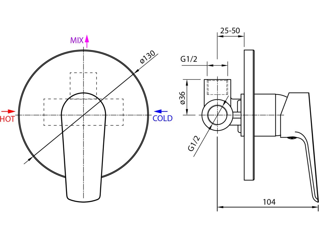 Aqualine LOTTA podomítková sprchová baterie, 1 výstup, chrom LT741