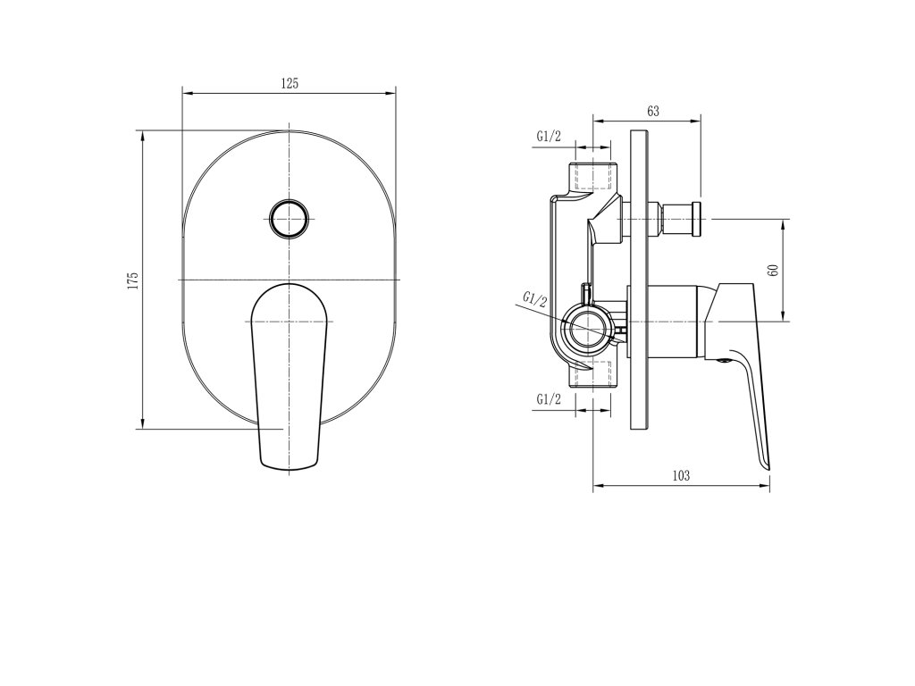 Aqualine LOTTA podomítková sprchová baterie, 2 výstupy, černá mat LT742B