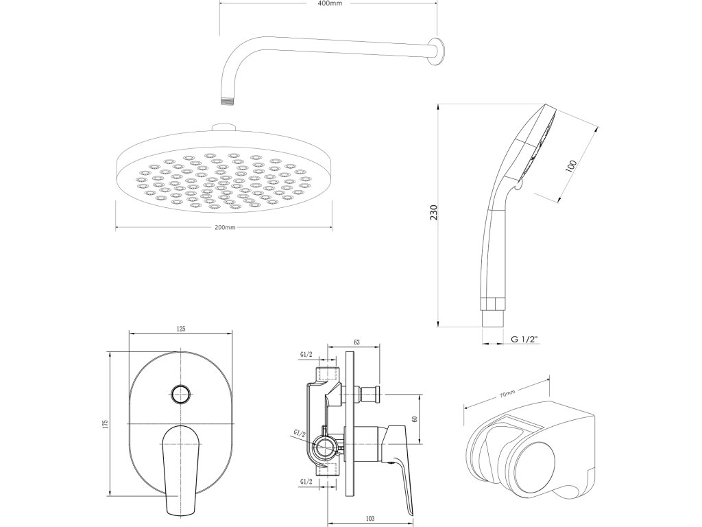 Funkce sprchy: | Déšť, Masáž, Mlha |