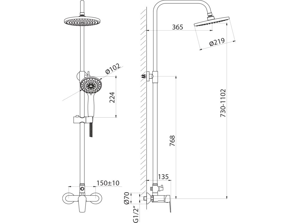 Instalace: | Nástěnná 150 mm |