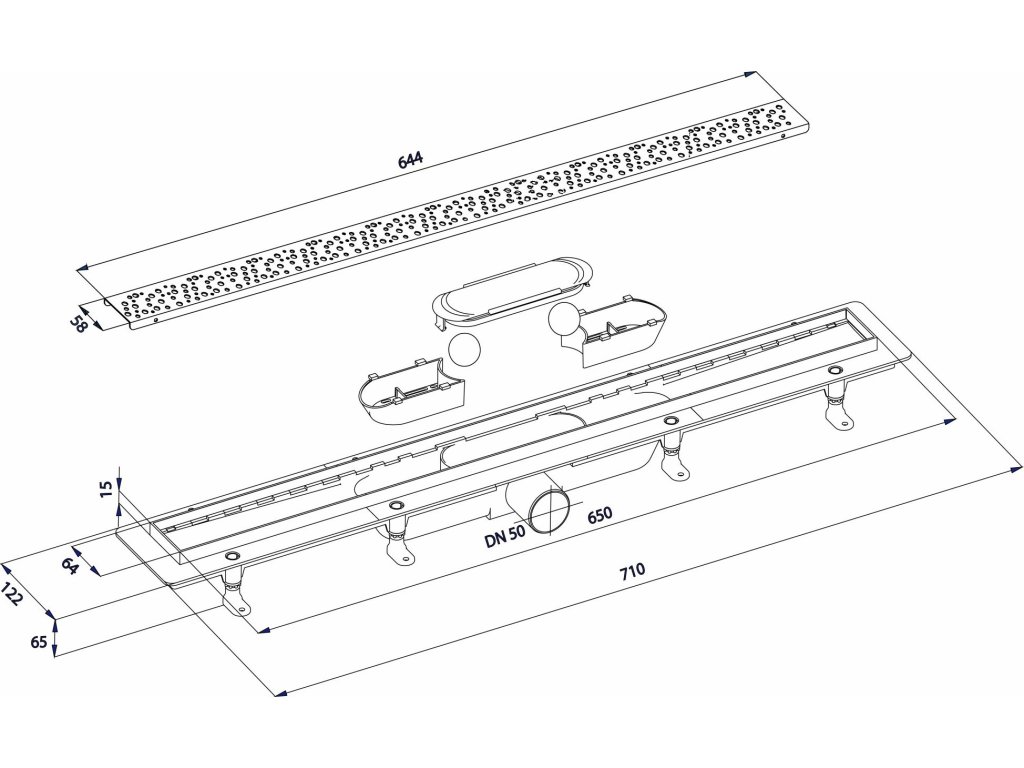 Aqualine MARMI podlahový žlab s nerezovým roštem, L-710, DN50 1702-70