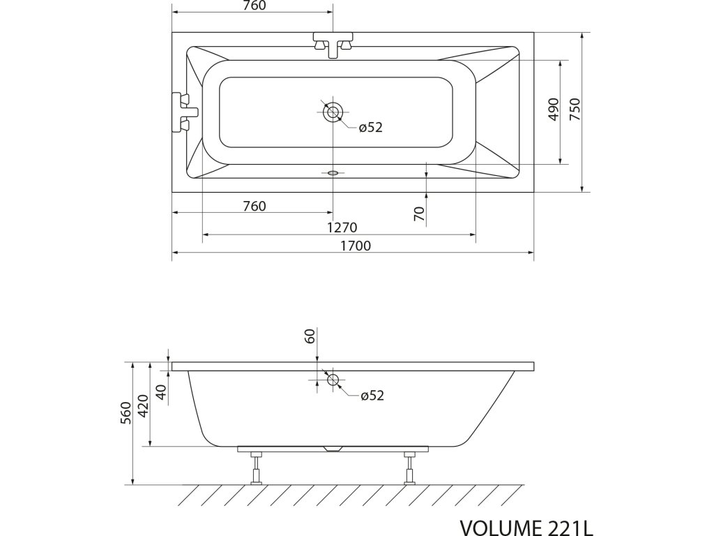 Aqualine NISA obdélníková vana 170x75x42cm, bílá A1775