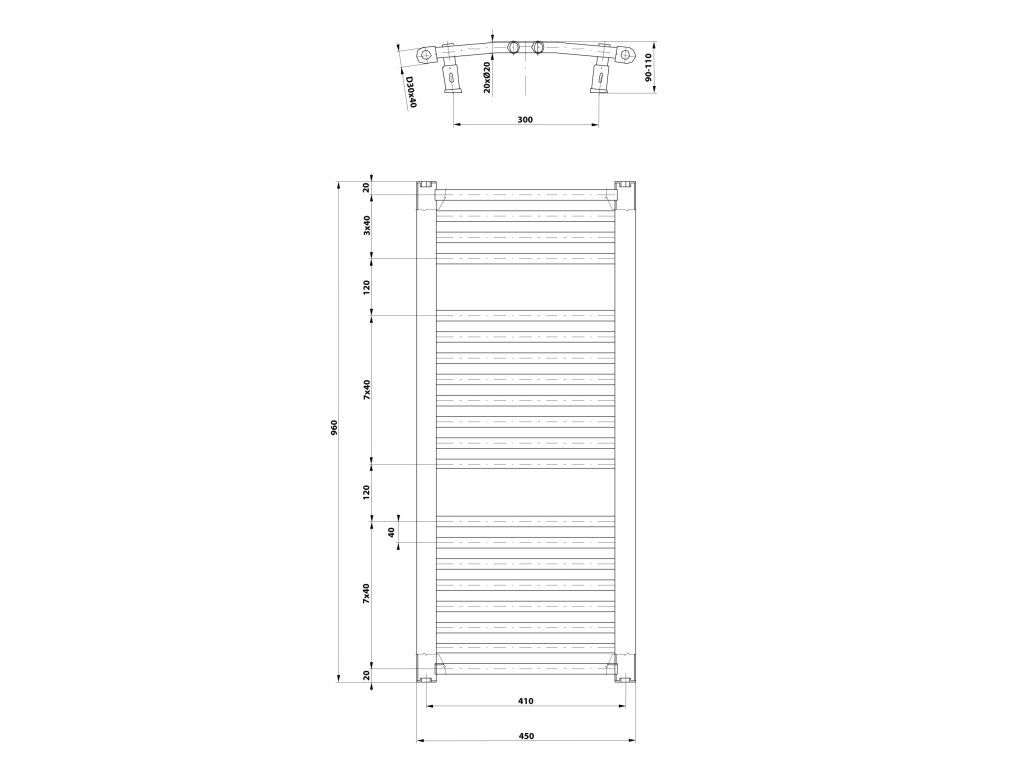 Aqualine ORBIT otopné těleso s bočním připojením 450x960 mm, bílá ILO94T