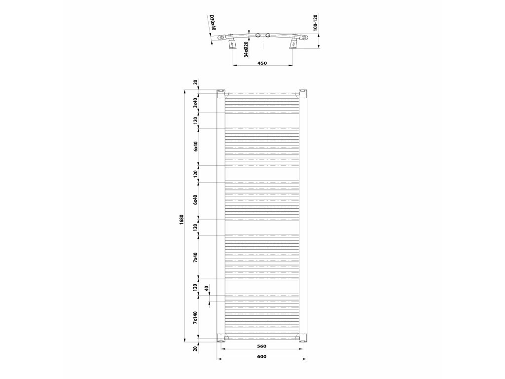 Aqualine ORBIT otopné těleso s bočním připojením 600x1680 mm, bílá ILO66T