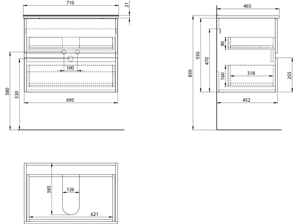 Aqualine PANEDA umyvadlová skříňka 69, 5x55x45, 2cm, bílá PN270