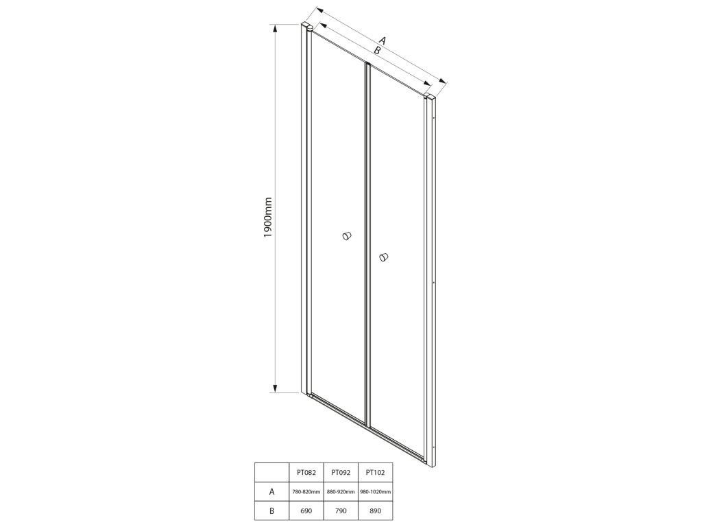 Aqualine PILOT otočné sprchové dveře dvojkřídlé 800mm PT082