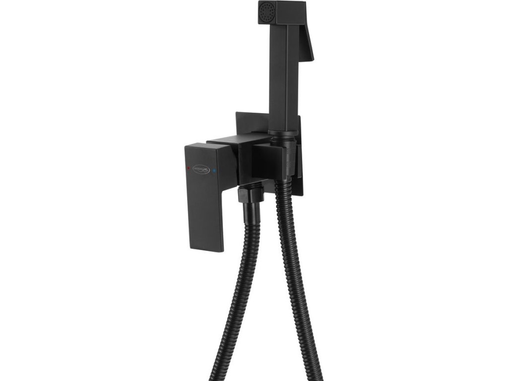 Aqualine Podomítková bidetová baterie se Stop sprškou, hadice 1, 2m, hranatá, černá mat SK301B