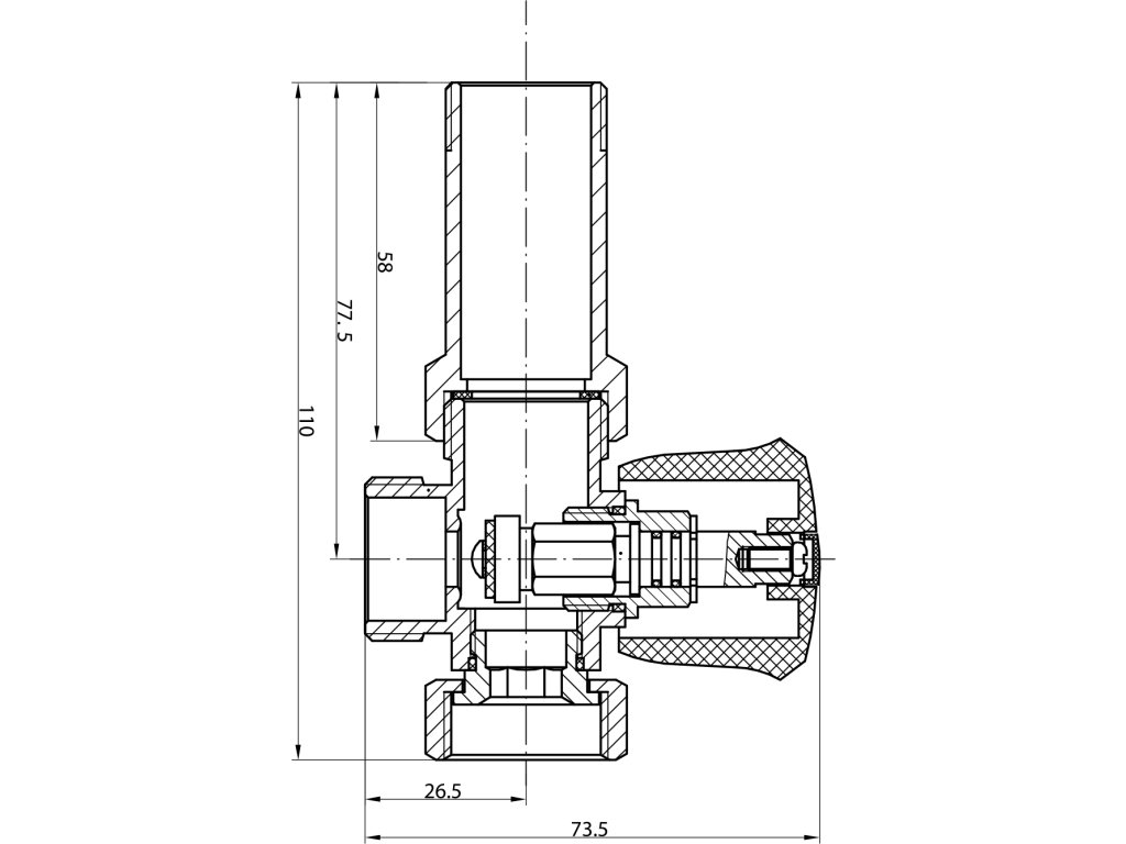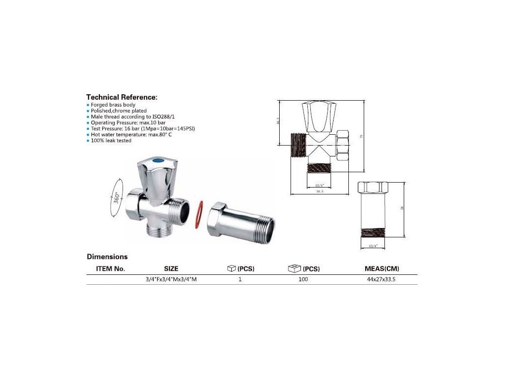 Aqualine Pračkový ventil před nástěnnou baterii se zpět. ventilem 3/4"x3/4", chrom 5315