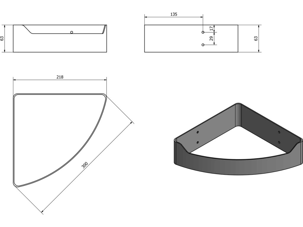 Aqualine SAMBA rohová police do sprchy, 218x63x218mm, černá SB209