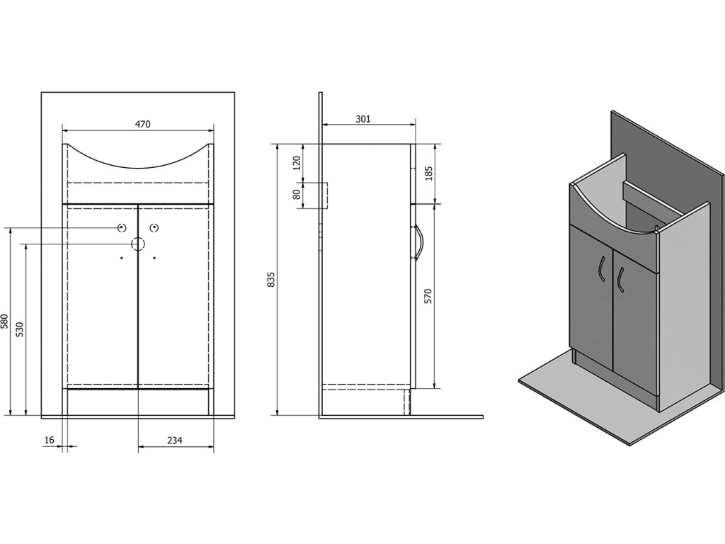 Aqualine SIMPLEX ECO 50 umyvadlová skříňka včetně umyvadla 47x83, 5x29cm SIME500