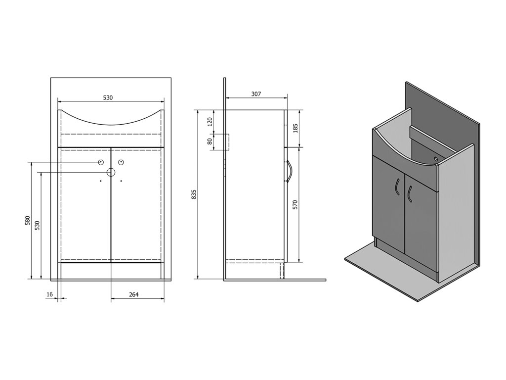 Aqualine SIMPLEX ECO 55 umyvadlová skříňka včetně umyvadla 53x83, 5x30, 7cm SIME550