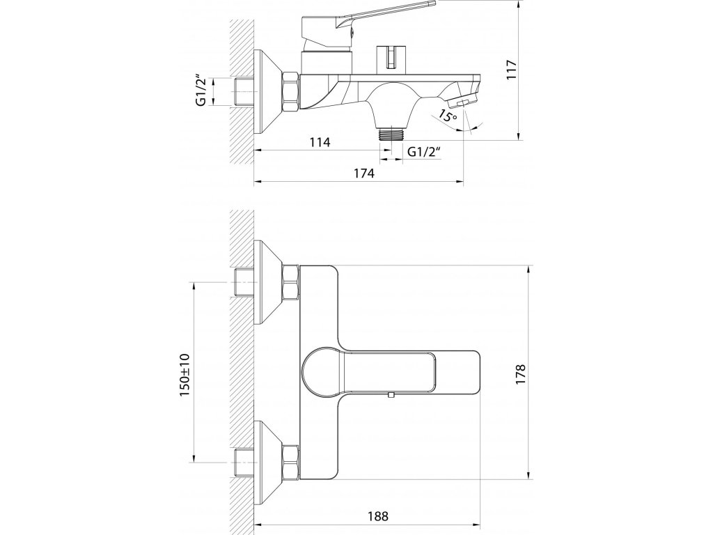 Aqualine SINTRA nástěnná vanová baterie, chrom SX010