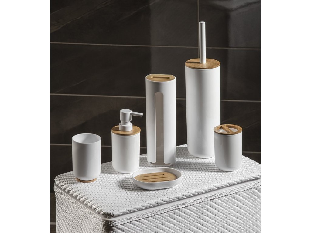 Aqualine SNOW držák kartáčků na postavení, bílá/bambus 7580